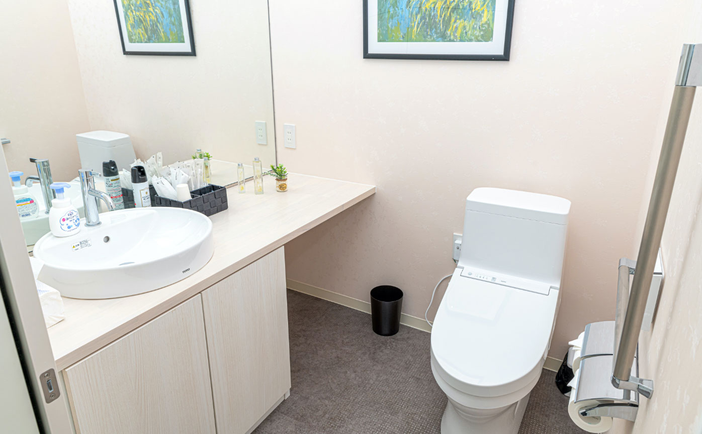 小さな森の家の家族葬式場は現代風の家族葬式場です。白を基調にしたモダンな洋風建築で、「葬儀会館には見えない」「おしゃれで素敵」とご好評いただいています。洗面所やシャワールームがあり、無料で使えるアメニティも多数ご用意しており、最小限の手荷物でのご宿泊も安心です。